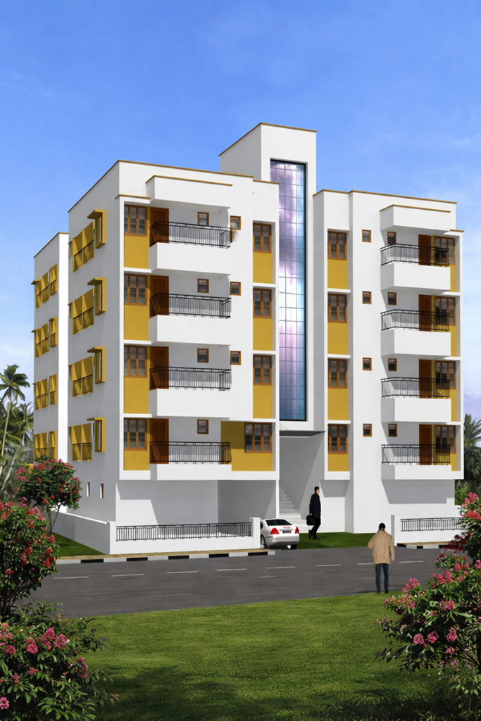 Dreamflower Leyenda is the 68th project of Dreamflower Housing Projects Pvt. Ltd. It is located at Valloor Road just 300 m from Petta Metro Station. There will be 27 premium flats (8 units of 3BHK and 19 units of 2 BHK) in 25.47 cents of land. The structure is Ground plus four floors with ample car parking space in the Ground floor with stilt parking.